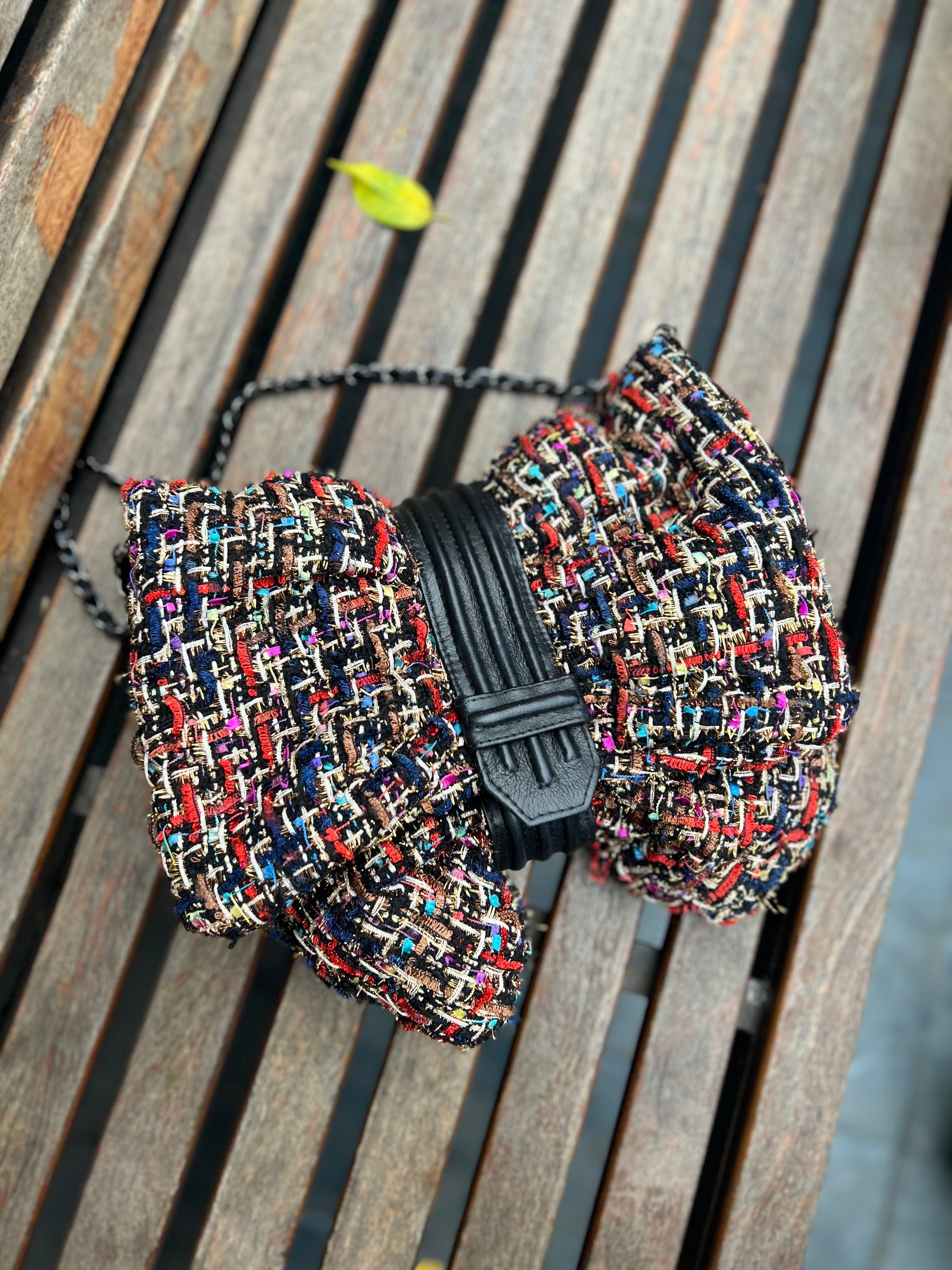 Tamanho pequeno para médio. Alça removível, para usá-la como clutch.