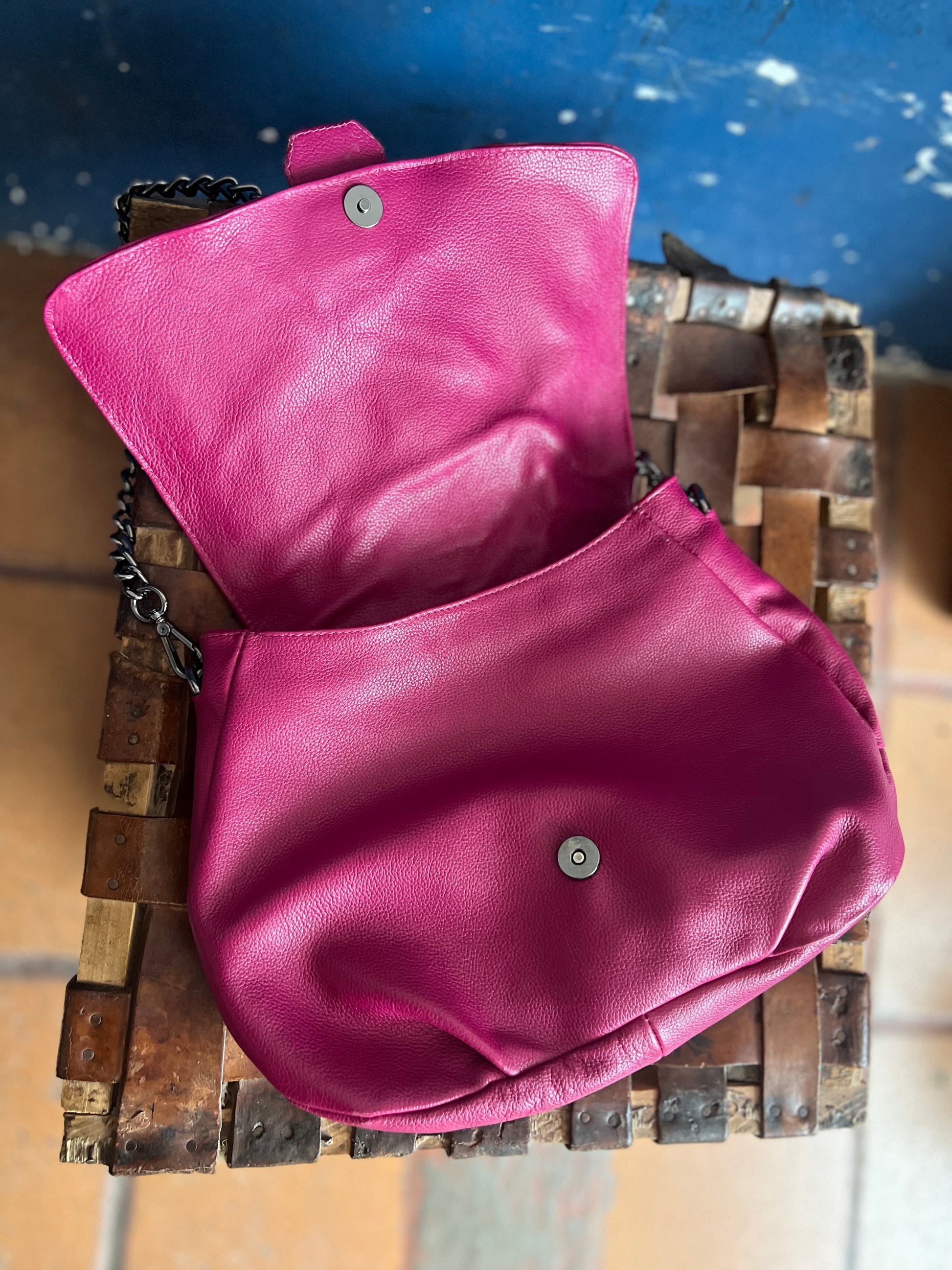 Bolsa casual, estilo malegável, fechamento com aba e botão magnético.